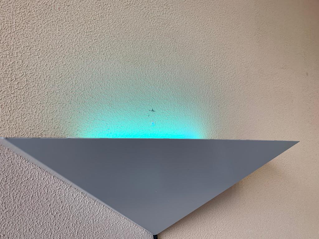 • свет направлен вверх — УФ-излучение не видно посетителям;