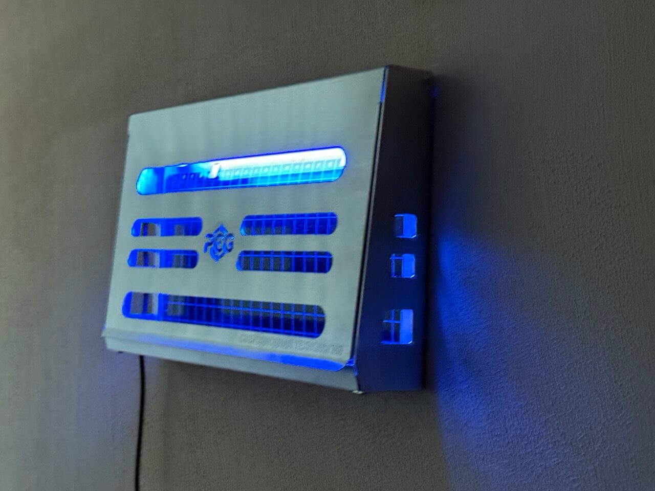 Благодаря современному дизайну PCG-UV-100 идеально вписывается - офисы, торговые залы (магазины, супермаркеты, минимаркеты и другие), столовые, кухни ресторанов, приемные, врачебные и ветеринарные кабинеты, аналитические лаборатории, детские сады, школы, дома престарелых и т. д. По распределению светового потока в пространстве: PCG-UV-100 уф-ловушка прямого света. Обладает стильным дизайном и высоким качеством исполнения, что делает уф-ловушку идеальным выбором для современных интерьеров. Отверстия в металле, расположенные напротив уф-ламп, позволяют скрыть от глаз посетителей заведения прилипших на клеевой лист летающих насекомых